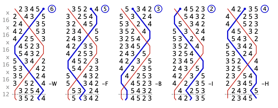 Notice anything? That’s right: they are the same leadheads, just in a different order! In particular, when you’ve rung two leads of Plain Bob, you get to 156342, which is the same as when you’ve rung only one lead of Cambridge.